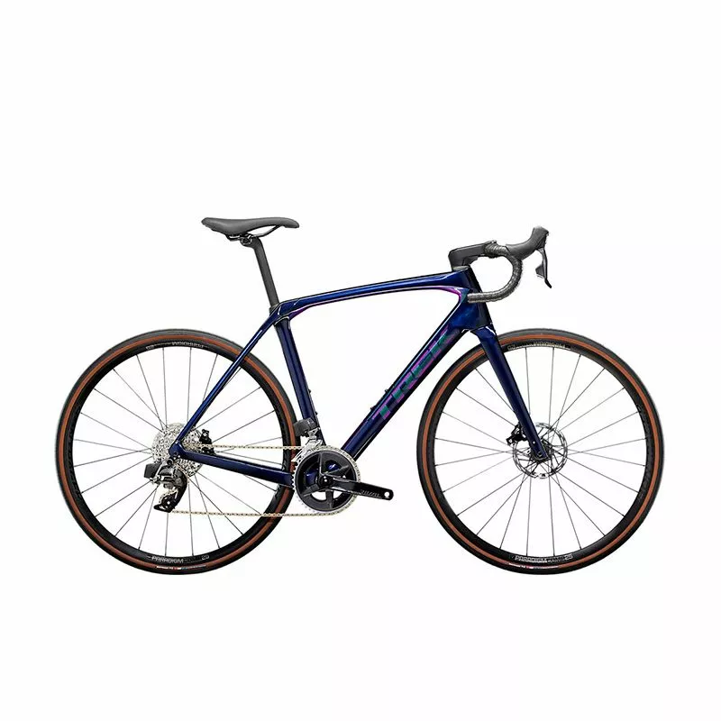 Domane SL 6 er en endurance-landevejscykel, der er let, aerodynamisk og bygget til lange, barske kilometer i sadlen. Med de kæmpe fordele ved en 100% trådløs elektronisk SRAM Rival AXS-geargruppe og frigang til op til 38 mm dæk flyver Domane SL 6 hen over både asfalt og brosten.